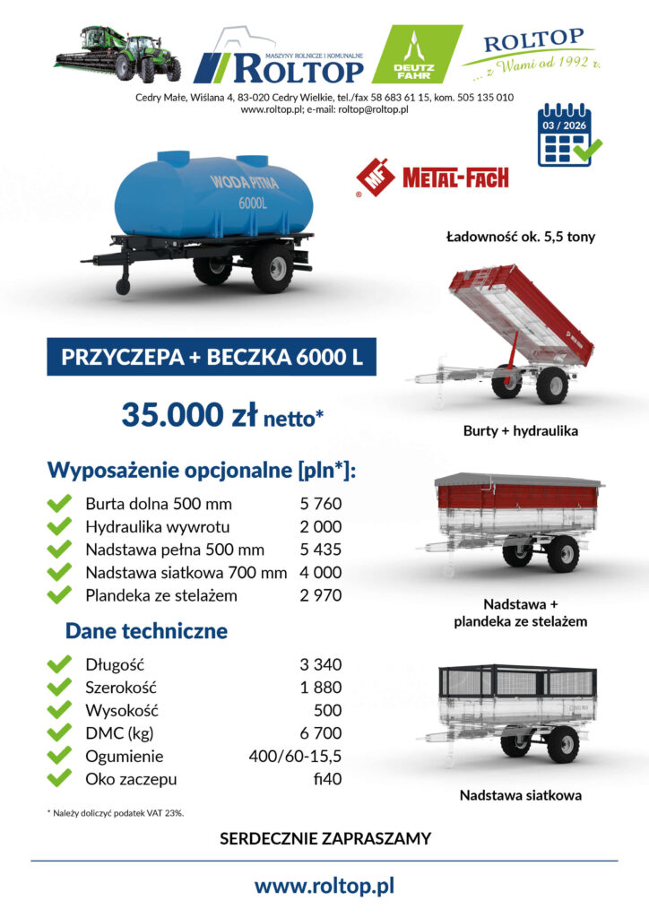 Beczka do przewozu wody pitnej + przyczepa jednoosiowa METAL FACH
