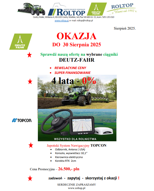 Jesienna oferta ROLTOP. Finansowanie ciagników z nawigacją TOPCON