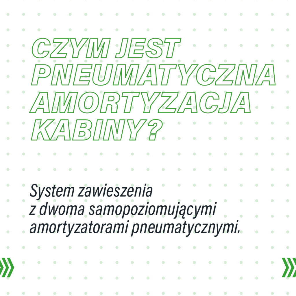 W połączeniu z amortyzacją przedniej osi i pneumatycznie resorowanym fotelem, zapewnia pozycję za kierownicą, która zmniejsza zmęczenie oraz pozwala zachować koncentrację i precyzję przez cały dzień.